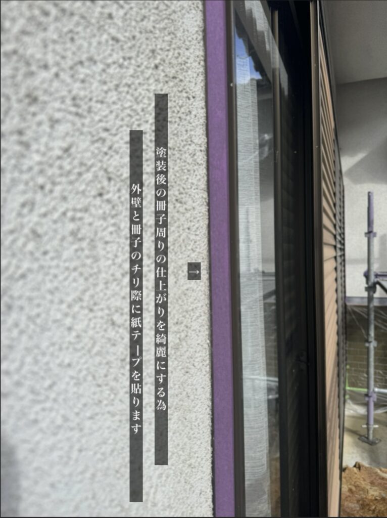 外壁塗装のめいせいでは養生前全てに紙テープを貼っていきます