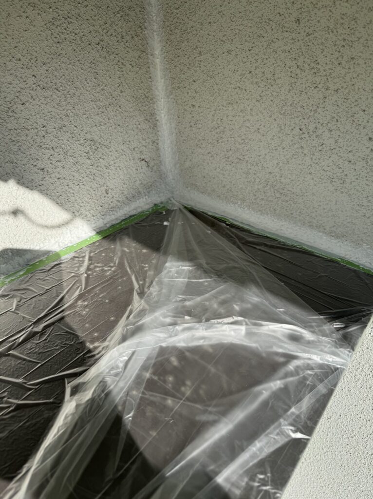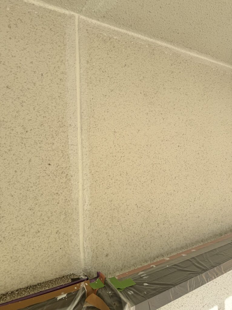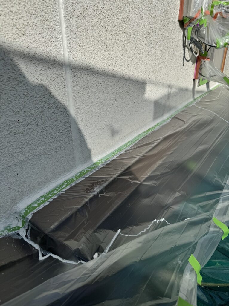 本日の作業はリシン壁のコーキングです