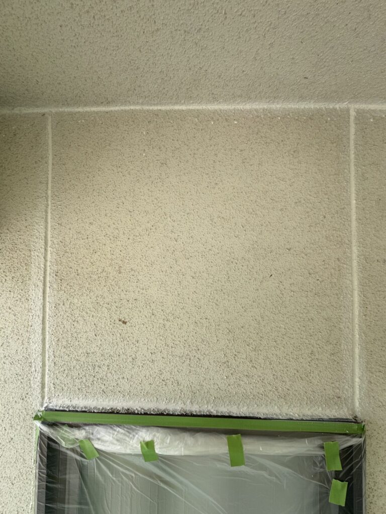 兵庫県姫路市外壁塗装リシン壁のコーキングの様子